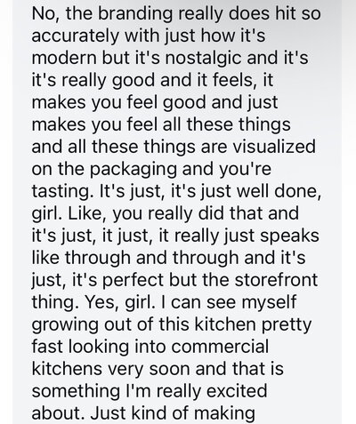 The voice is uplifting and empowering, like a proud grandmother offering you seconds without asking. It’s friendly and informative, guiding you through ingredients and offerings with care. And it’s always indulgent and intimate. Inviting you into an experience that’s made to be savored.